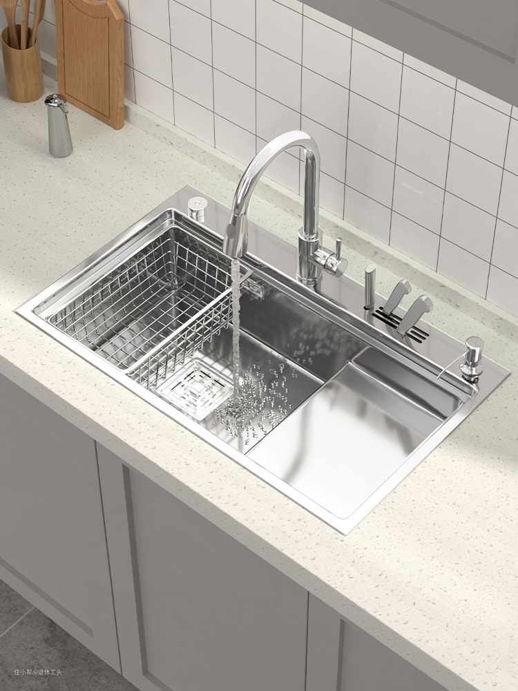 首先,我们要了解,不锈钢的类型有很多种,其中,304不锈钢是用得最多的一种。对于一款好的不锈钢水槽,其不锈钢的厚度大约在1.2mm-1.5mm之间,这样才能保证足够的强度和耐用性。