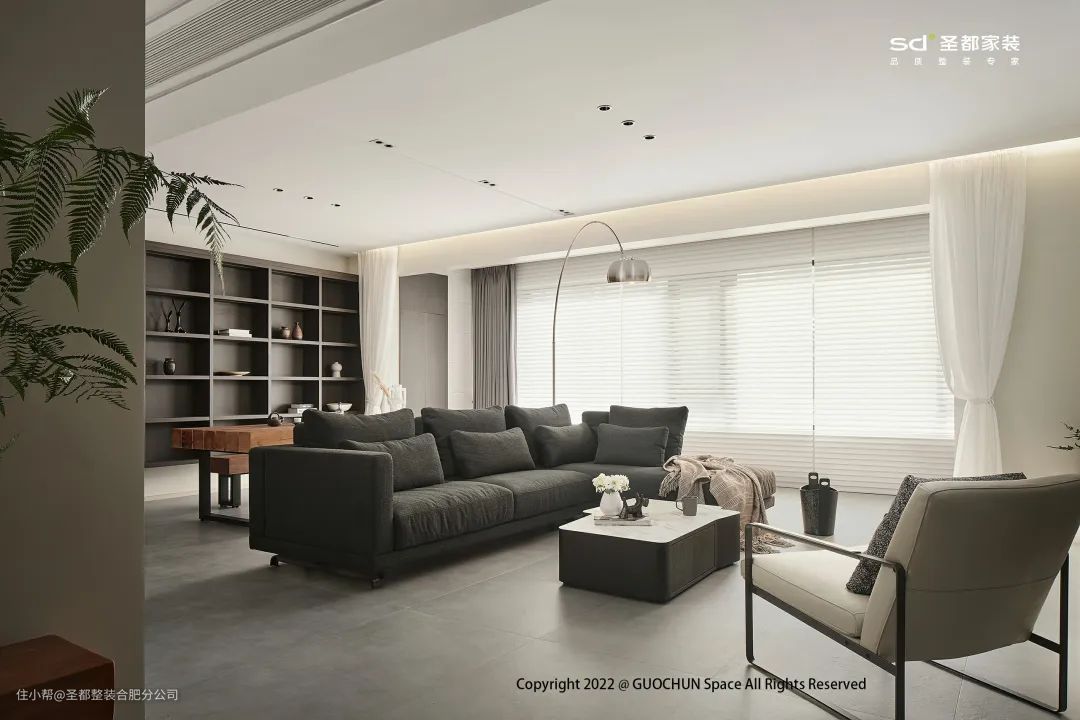 如果客厅的区域比较大,可以尝试着以沙发为空间隔断,将空间一分为二,然后根据自身需要规划一片功能区,如开放式书房、休闲区、茶室等。