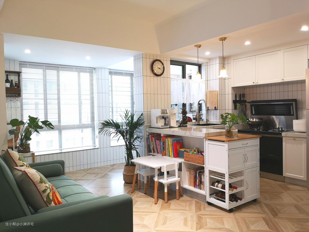 厨房像个战场,一顿饭做完,房间里会变得一片狼藉。毫无遮拦的房间,会把这种景象倾斜在客厅里。本来是为了好看而做的开放式厨房,现在反而成了“污点”。