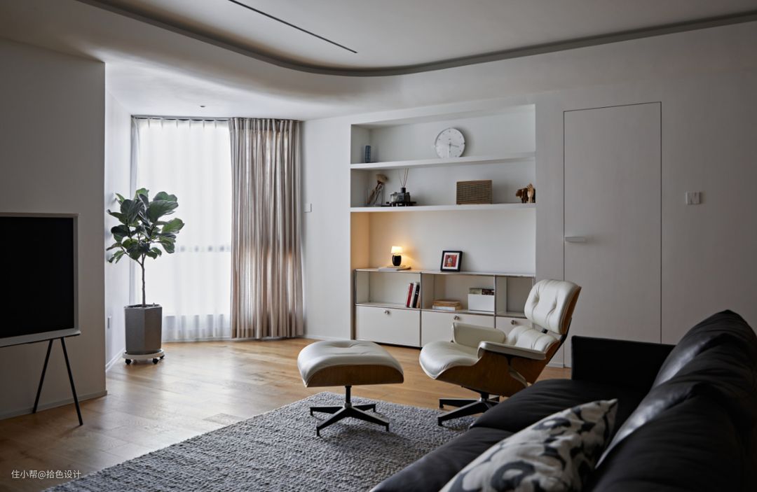 不仅如此,当顶面四周墙角用弧形过渡处理之后,还在开阔空旷中,有了一种无限放大的视觉感。