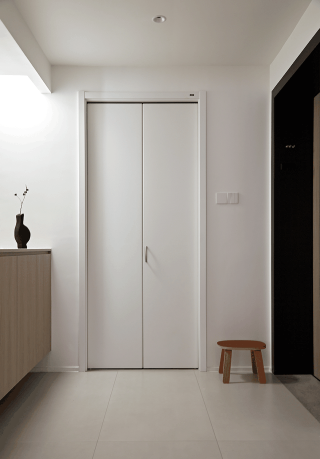 二次改造出的独立玄关区,让回家动线有了一个缓冲地带。一来为居住者提供了紧凑的归属感与细小的仪式感;二来强调了落尘区的存在,让室内更加整洁。