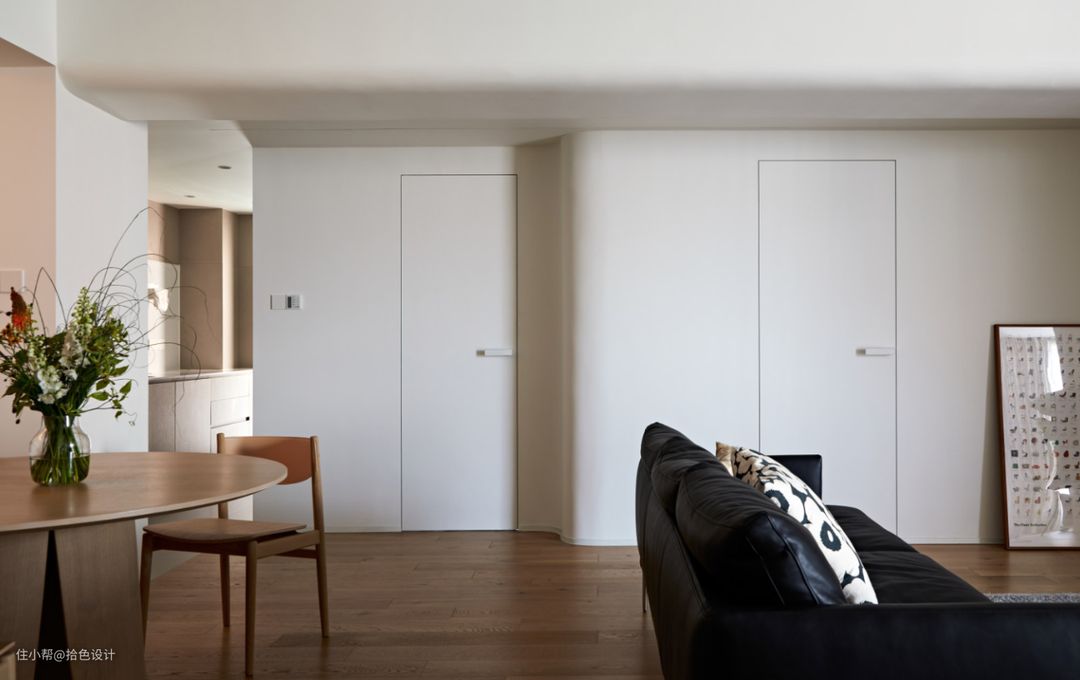 比如下面这位屋主在装修时,就给全屋安装上了无框隐形门,再加上硬装部分秉持了极简主义,整体效果出来后,那叫一个高级。