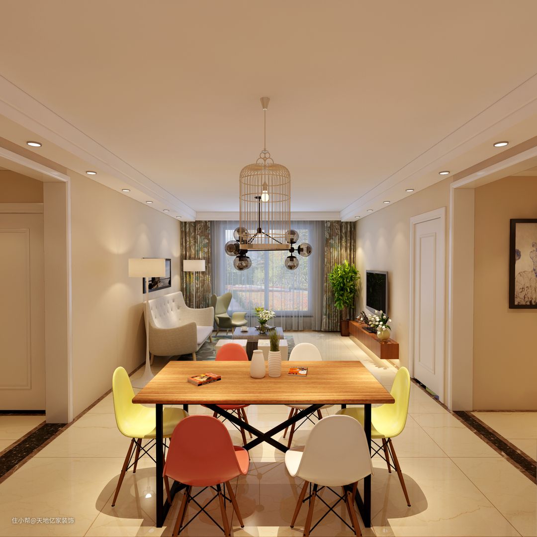 餐厅需要考虑的尺寸主要是餐桌与桌椅的位置,建议留出90cm的距离,方便家庭成员起身和落差。
