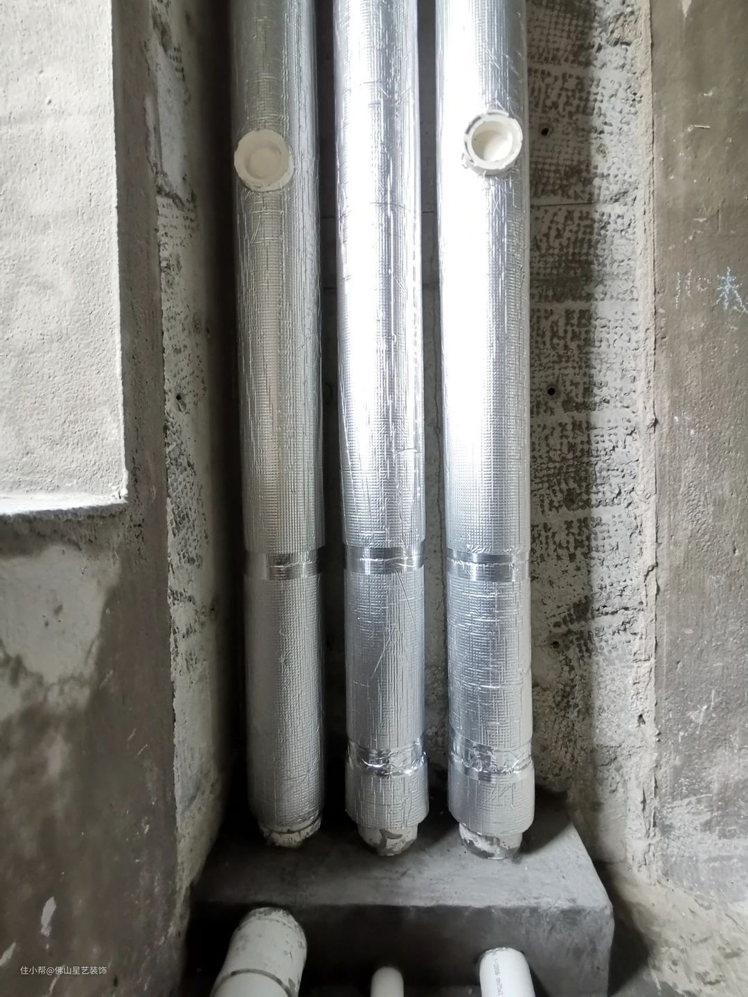 立管通体包扎专用管道隔音棉,接口处胶带封闭。