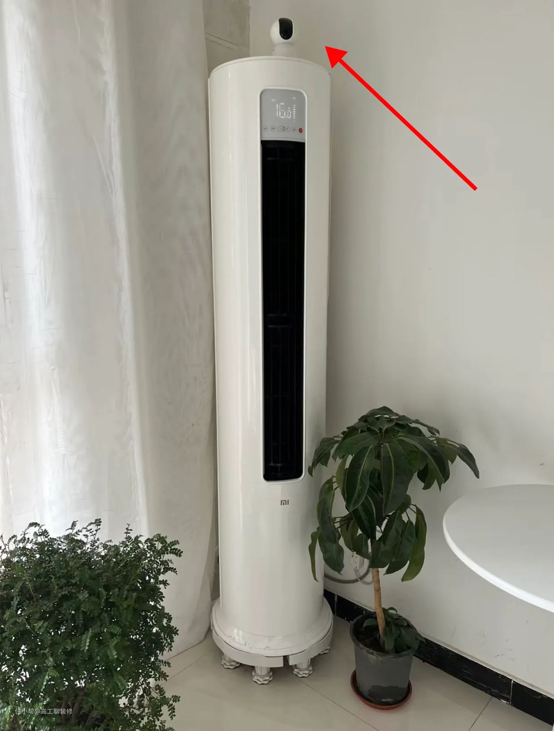 客厅空间离不开一些绿植做点缀的效果,如果把绿植摆放在地上的话,一盆小小的植物真的很占用地方,不如把绿植放在圆柱柜机上方,这样上方的空间能够得到合理利用的效果,或者有些其他家庭,为了确保家里安全,在家安装监控,那么监控也可以放在空调的顶部,这样就能够在高处观察到四处的实景效果。