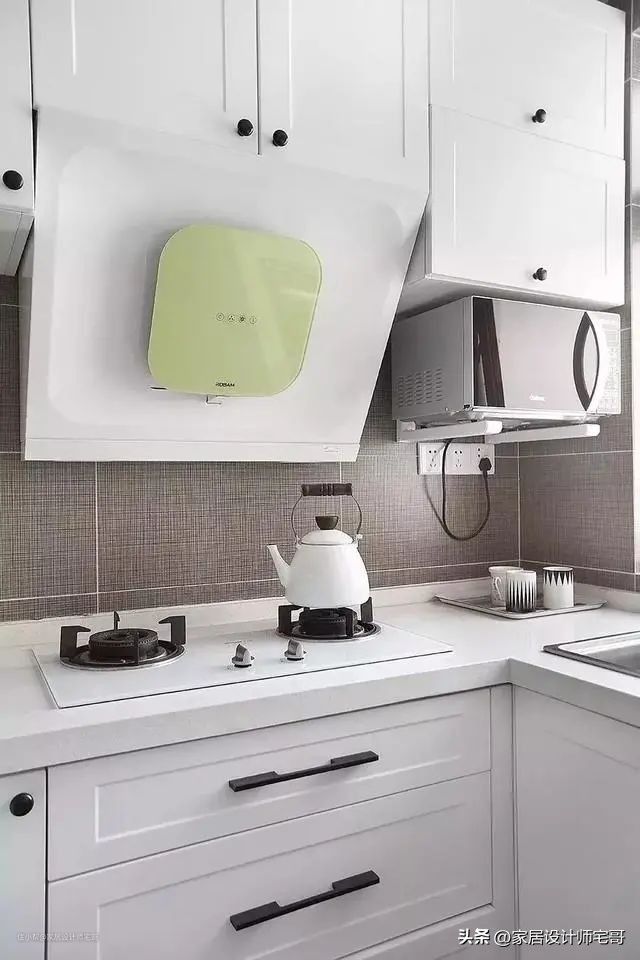 厨房整体采用了白色橱柜,搭配黑色拉手,简约精致又时尚。