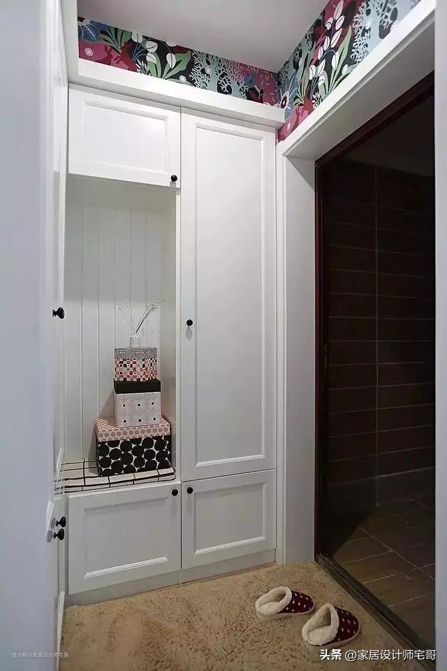 柜子顶部贴上花纹墙纸,瞬间点亮了这个小小空间,这个设计不仅实用,更是极具个性和创意。