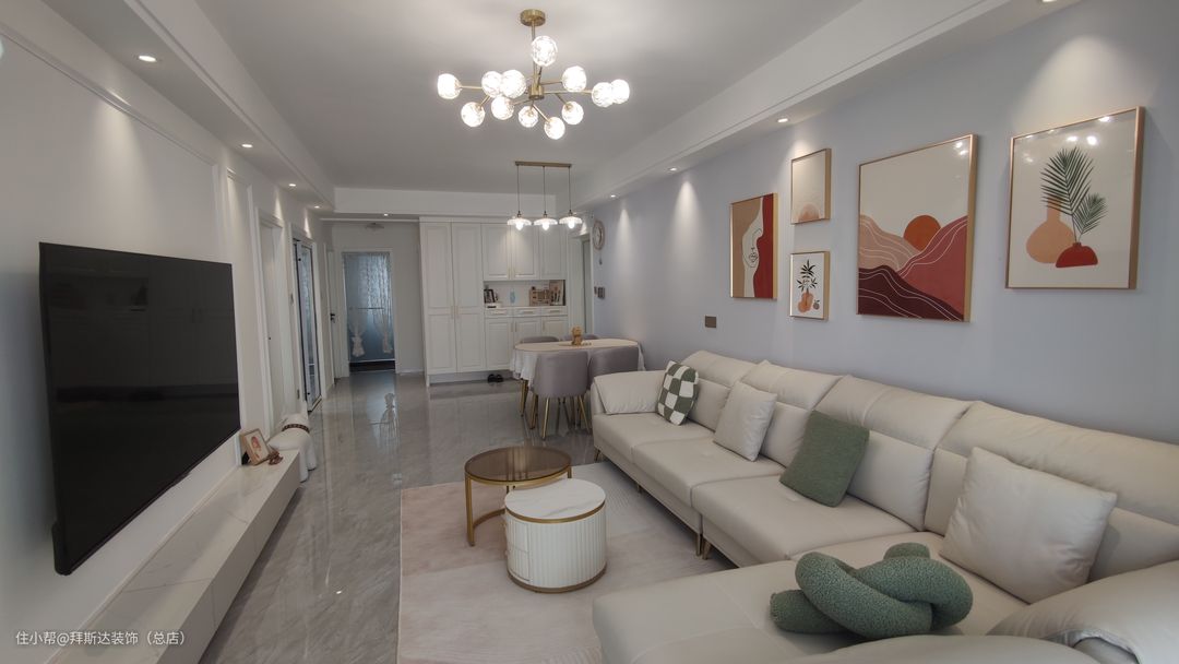 118平现代简约+轻法式,这样的客厅设计简单但又暗藏心机