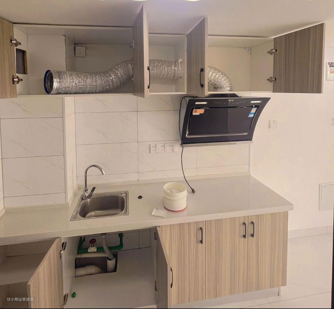 很多人为了将抽油烟机和烟道管藏起来,做成假柜子封住,这样不仅浪费钱,还容易藏匿蟑螂。