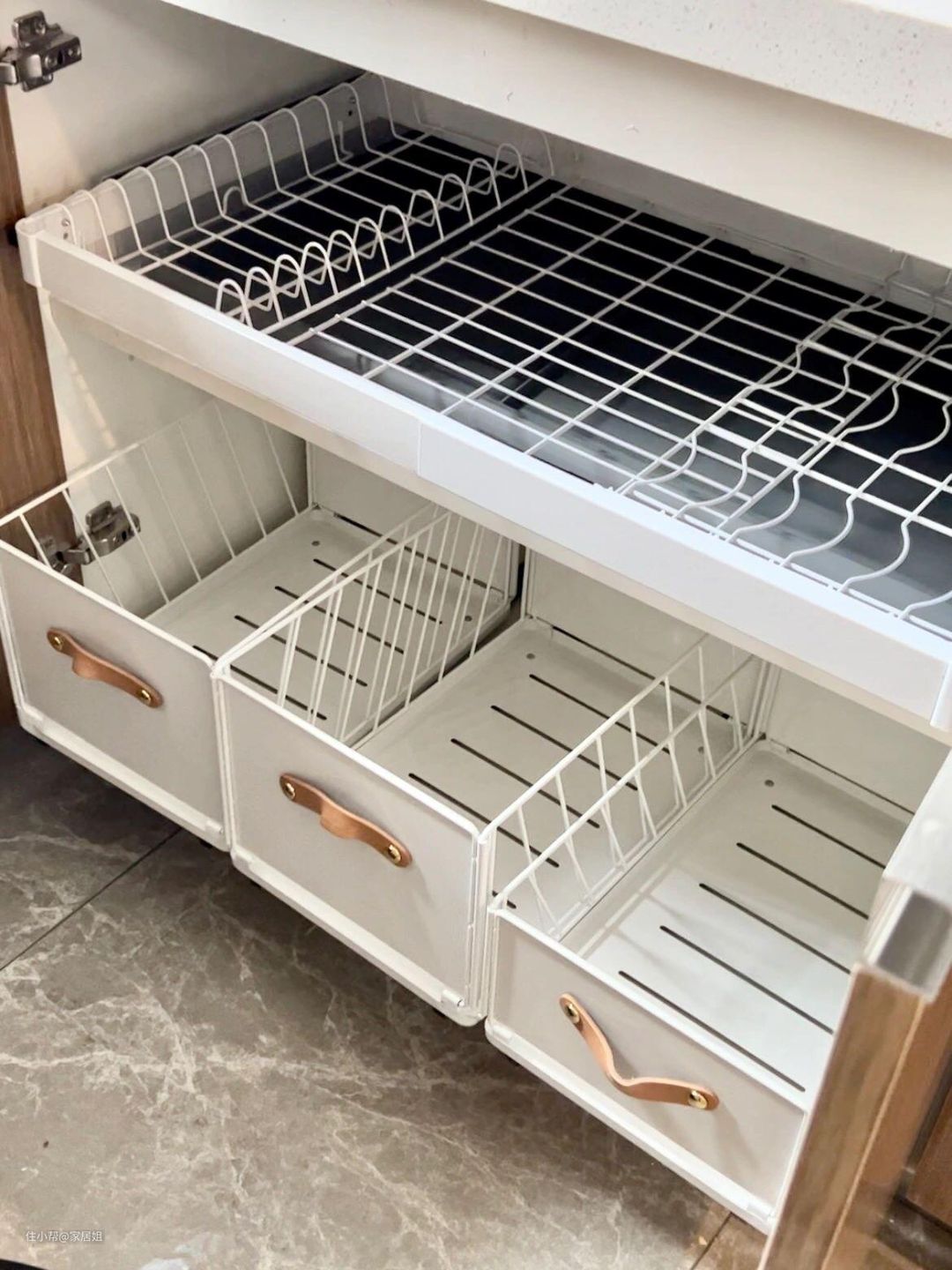 如果橱柜无法安装抽屉,你仍然可以通过一些其他方法来解决厨房的储存需求。