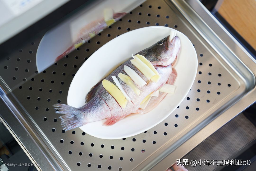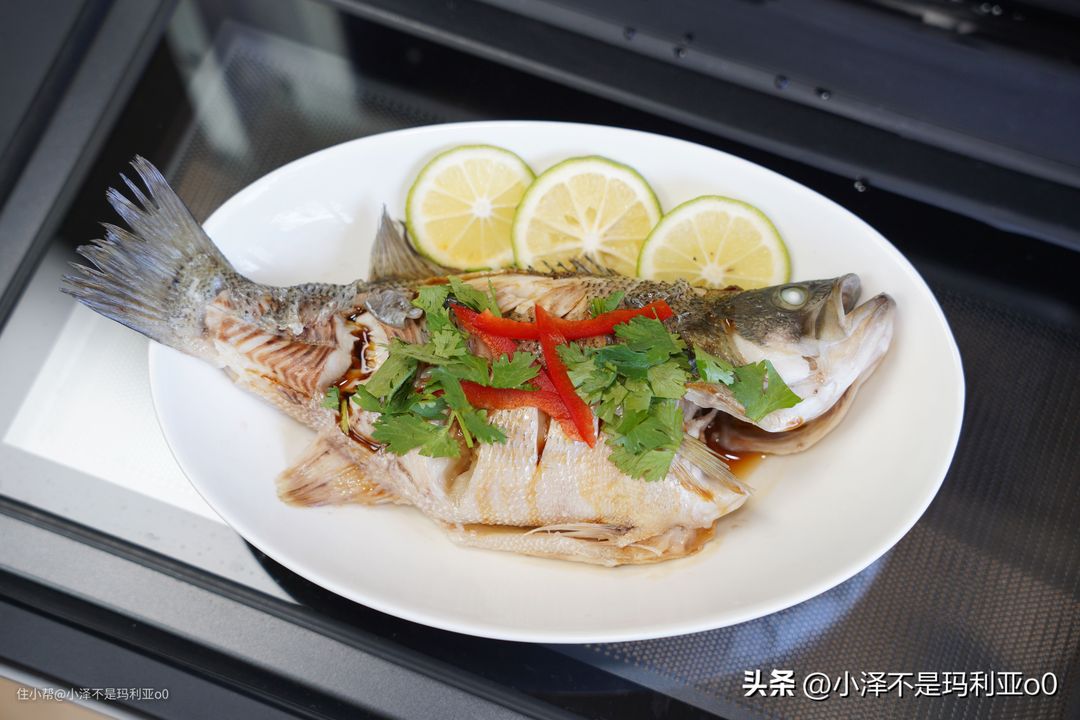 体验完了烤,咱们再来试试蒸的功能,这次我依然用内置的智能食谱,做了一道清蒸鲈鱼。平时家里都是用蒸锅蒸,蒸完后鱼盘里全是水,鱼肉完全泡在水里,吃起来也比较绵软,很难保留住鱼本身的鲜味。