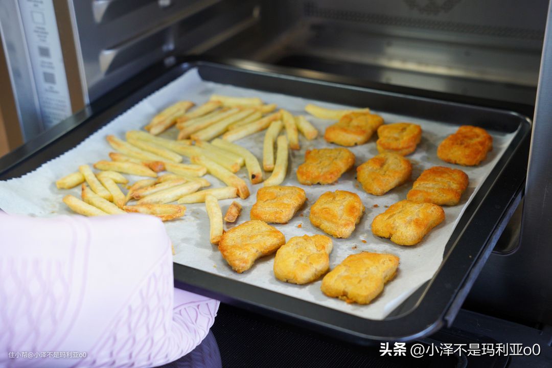 炸鸡块我真的太爱了,每次吃夜宵都被它包圆了!以前不想自己动手油炸,嘴馋了只能叫外卖,有了微蒸烤一体机之后,因为它有空气炸功能,我只要把半成品鸡块放进去等15分钟,就能解锁美味,So~easy!