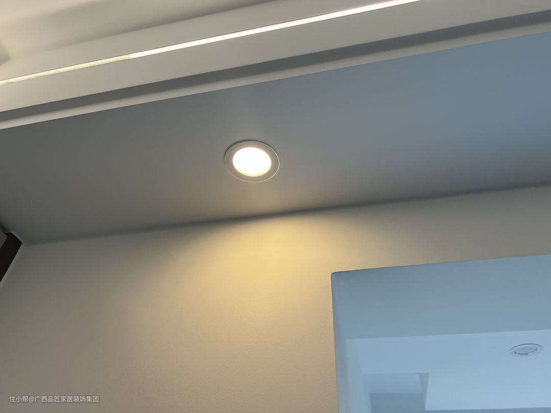 射灯是能局部改善空间的亮度进行的设定,吊顶之间加设灯光可以装饰顶面以及墙面,在简单的空间里有意外的美感加持。