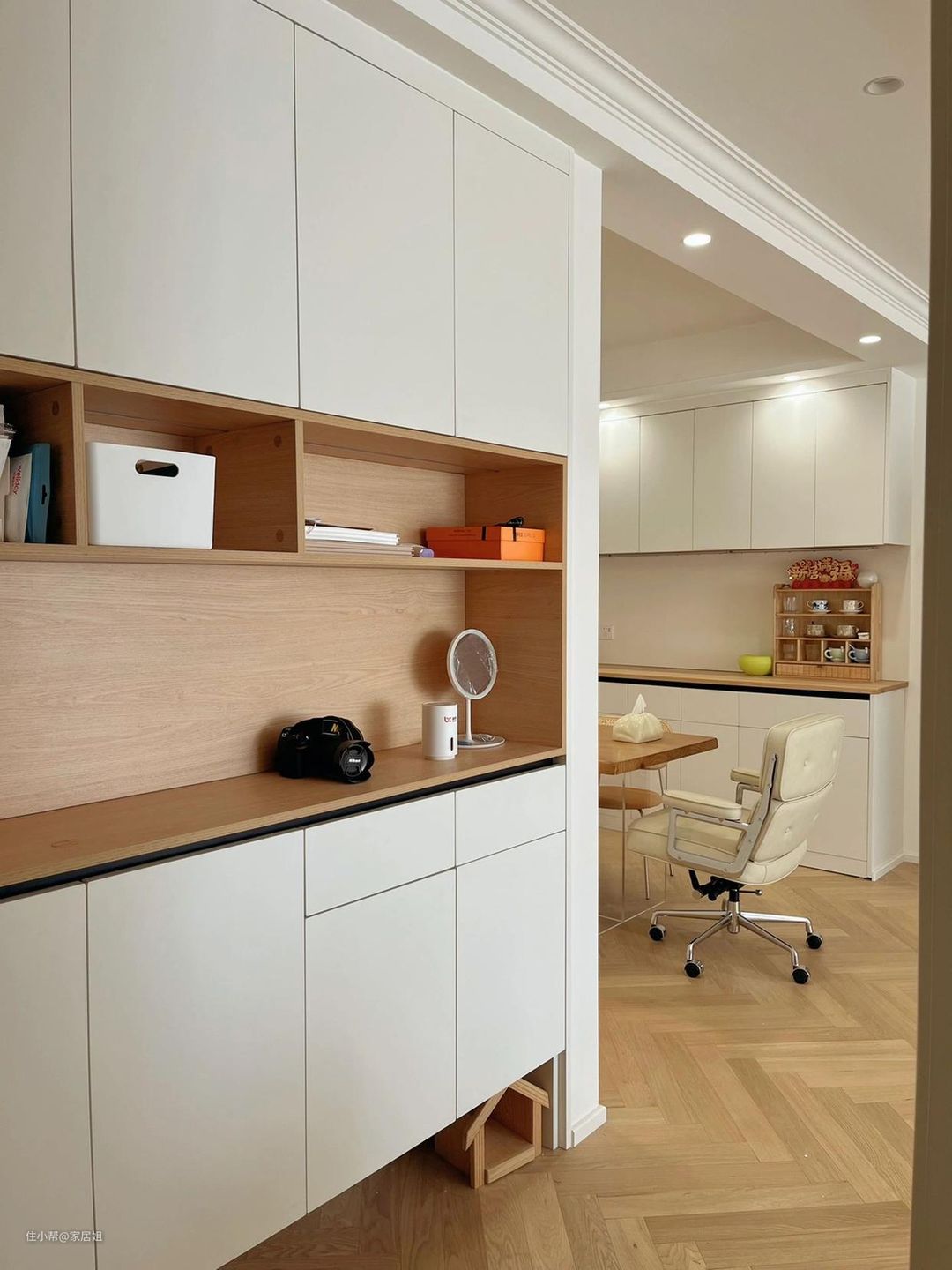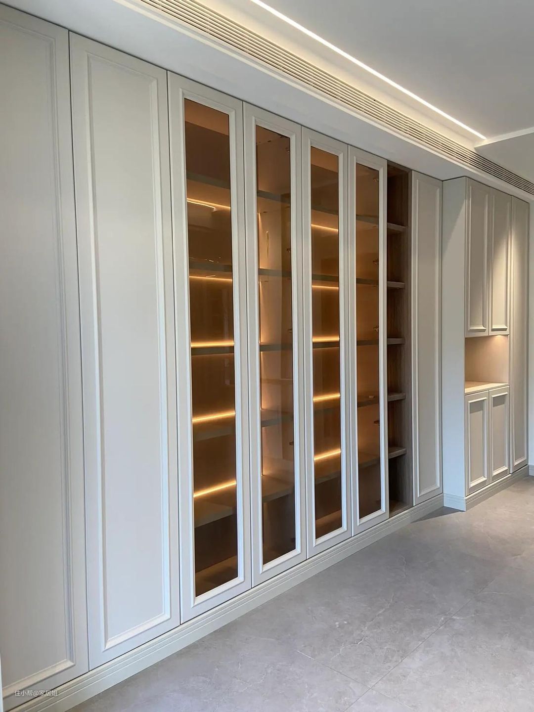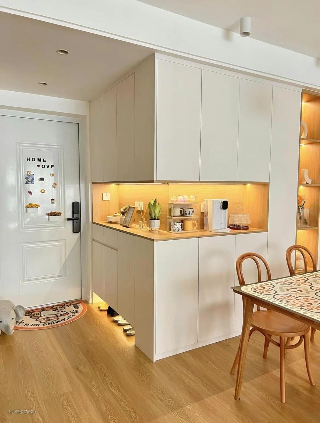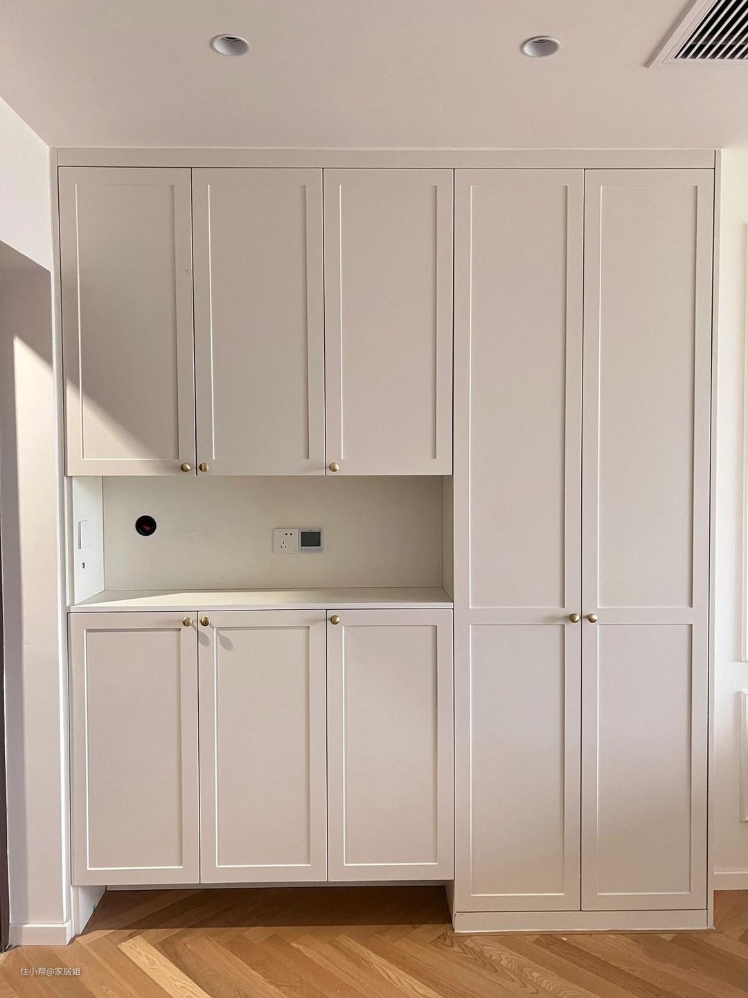 所以,有些业主考虑到整体效果,柜体让木工打,柜门定制,这样就可以最大化达到自己想要的效果。