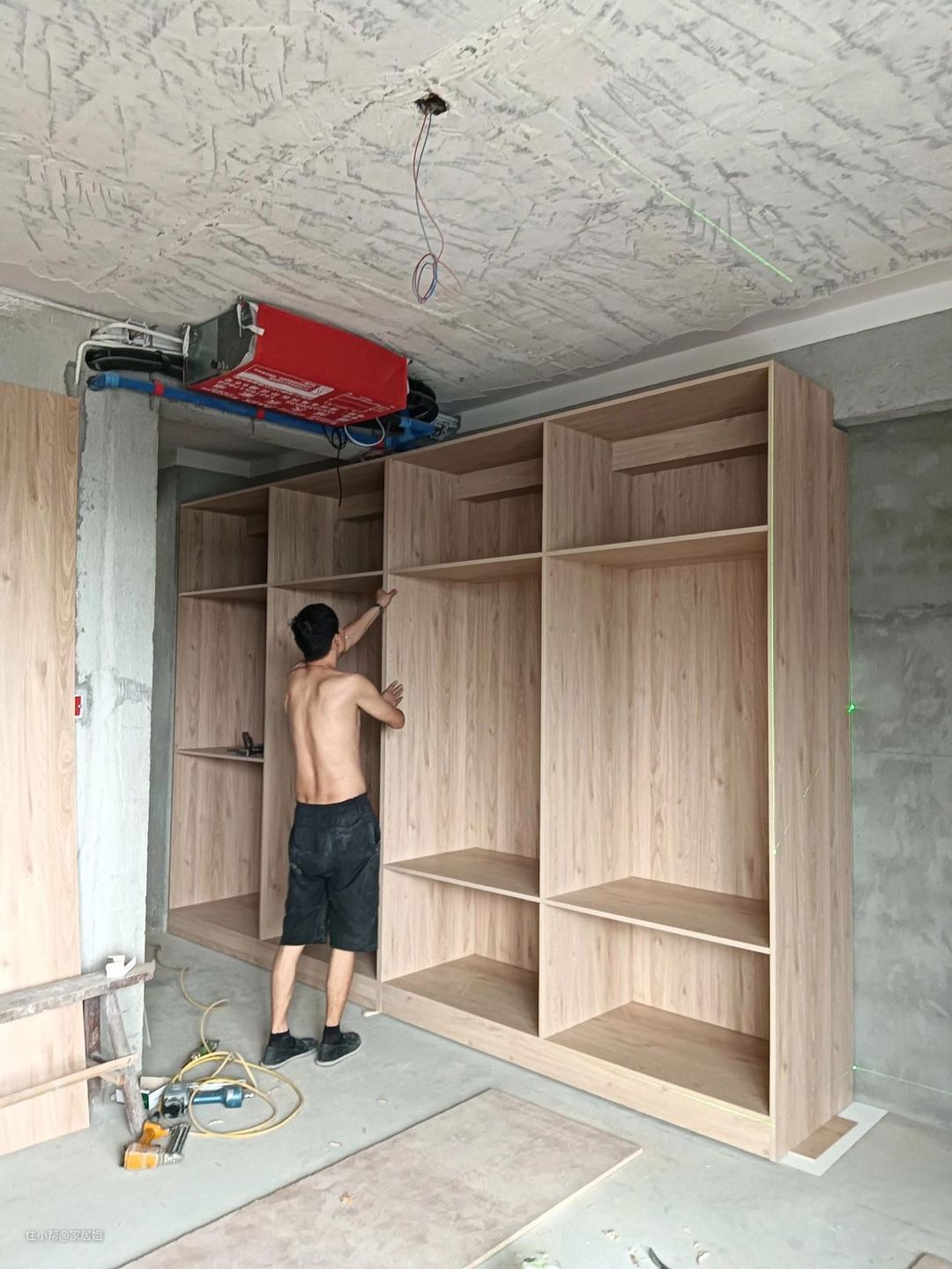 木工打柜子是传统的做法,也是最常见的一种制作方式。现场打柜子通常设计好图纸后由专业木工进行制作。