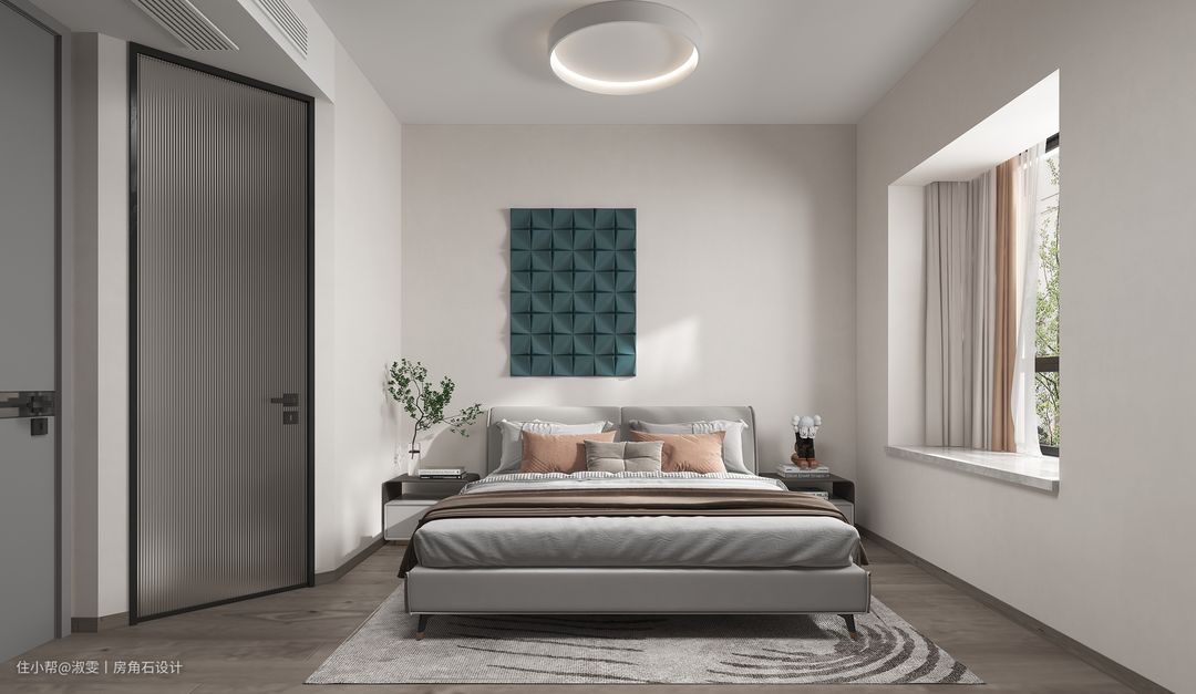 L型衣柜的设计,增加了收纳空间,也保障了卧室的私密性