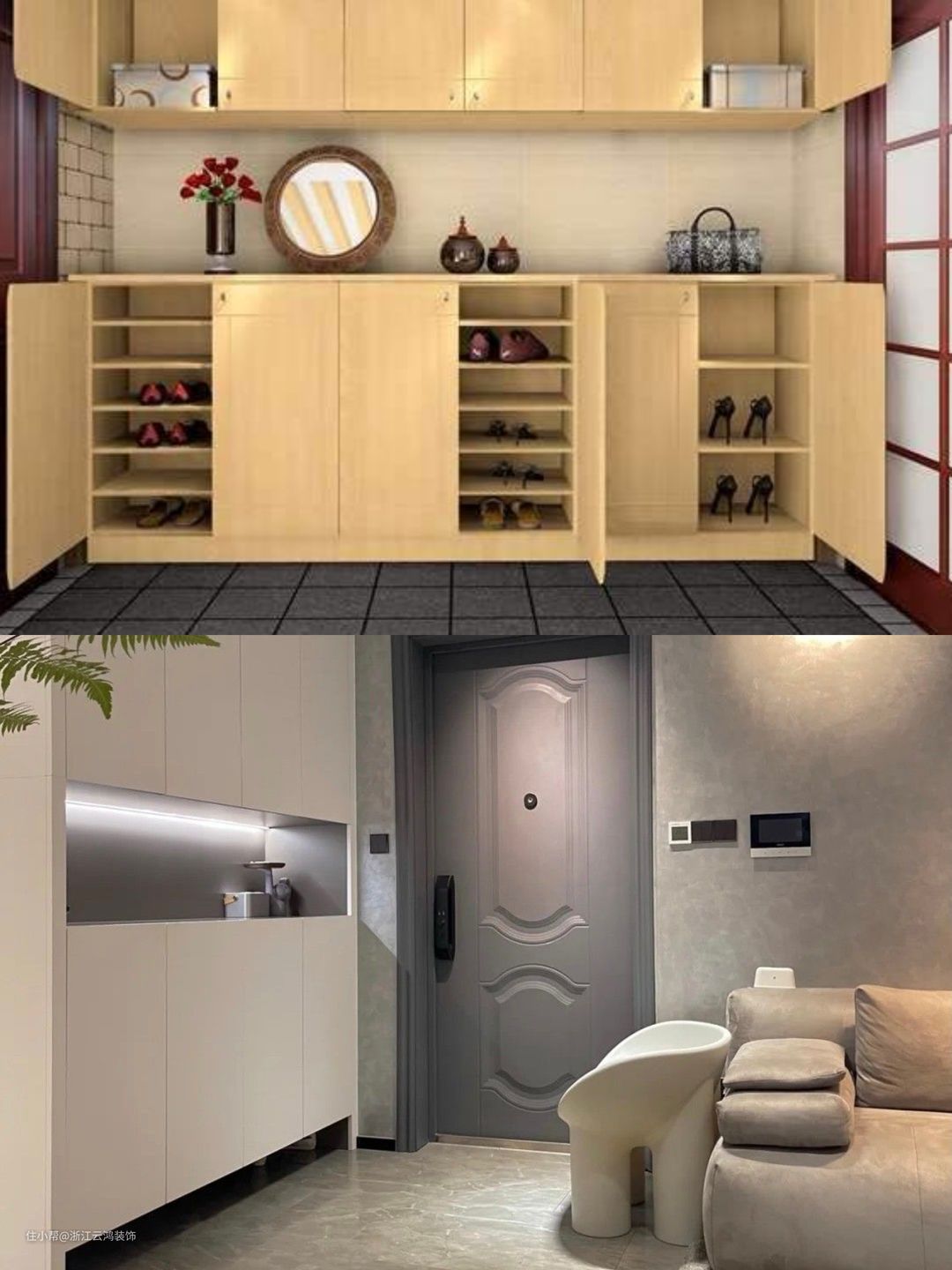 1、大鞋柜。一般这种柜体的尺寸是1347*318*1032mm,基本上满足绝大多数鞋子收纳需求。