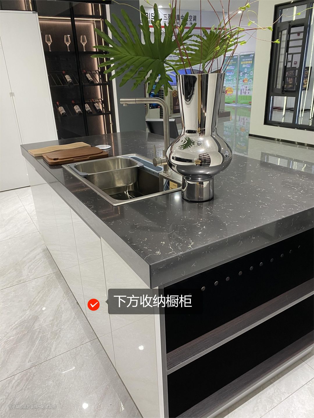 岛台不仅可以利用台面,还可以在台下设计橱柜收纳柜,从而增加厨房储物空间。