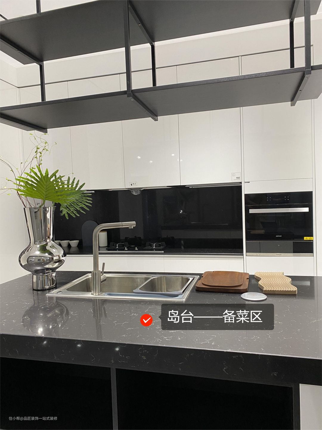 厨房中增加岛台,备菜就可以放在岛台上,从而释放一部分厨房操作台面,还可以与家人共同分享烹饪的乐趣。