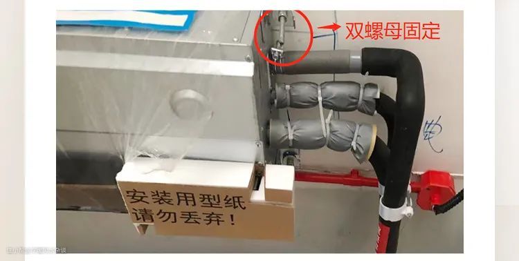 在安装中央空调室内机时,要留意吊杆是否采用双螺母来固定的,若使用单螺母固定就可能固定的没有那么牢固,在长时间的使用过程中出现室内机松动的情况,从而引发危险。
