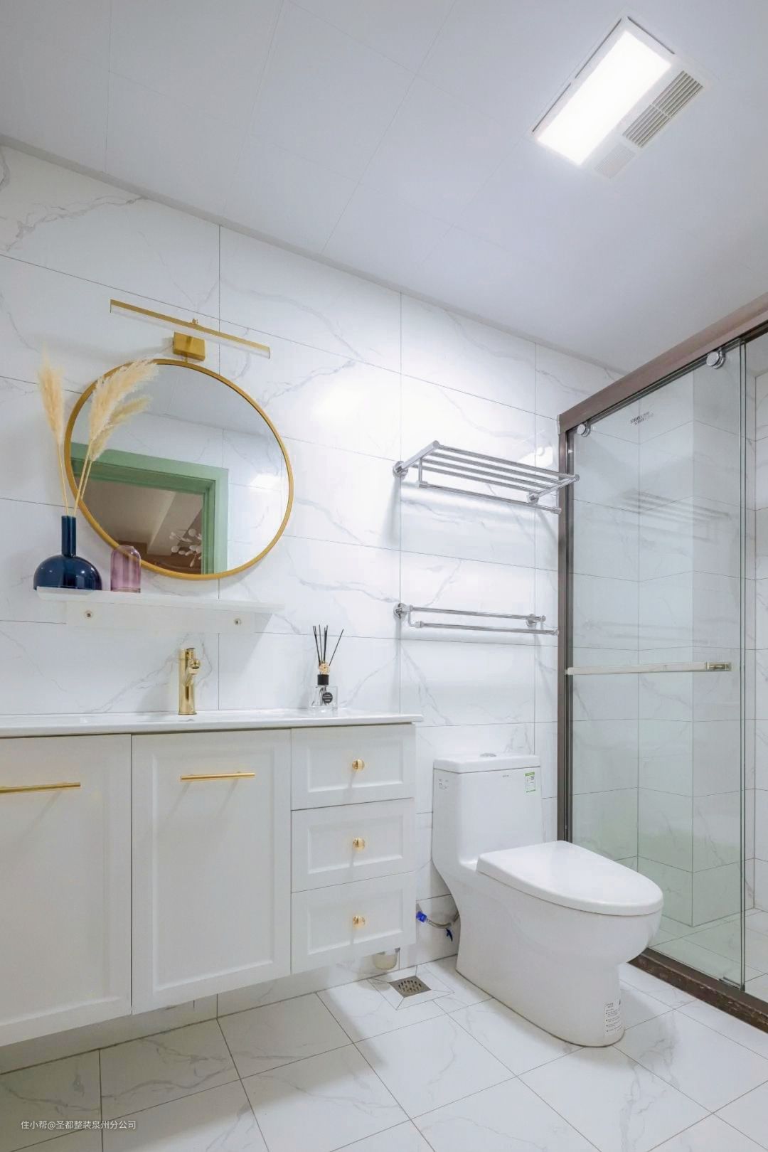 爵士白的瓷砖和浴室柜,让卫生间变得明亮起来。用金属边修饰造型,梳洗的每一步都有条不紊,才是优雅的生活态度。