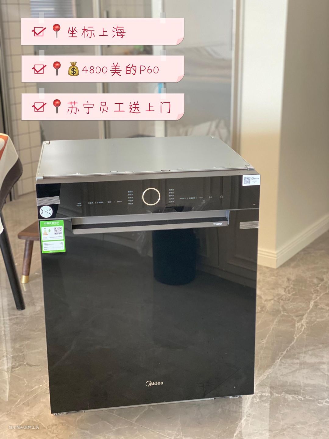经过一番比较和选择,我最终入手了一台嵌入式洗碗机,容量为12套,价格在4000元左右。这台洗碗机的品牌是美的P60。
