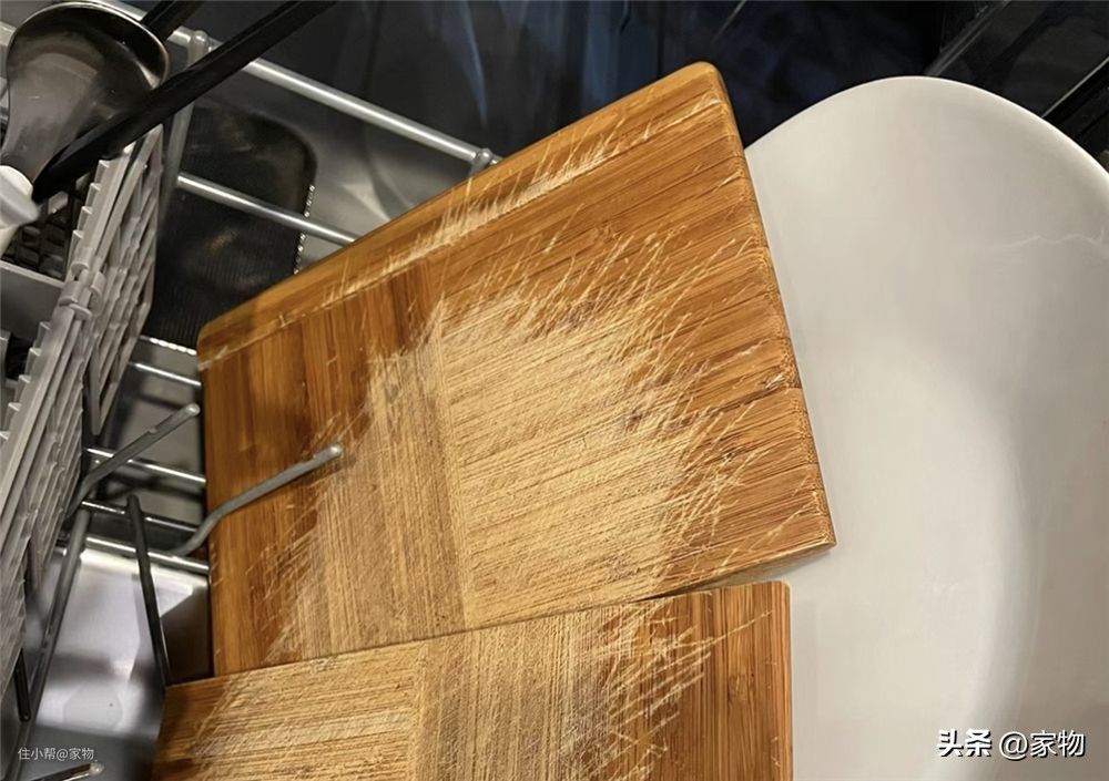 各种木质、竹制的大大小小砧板,我都不建议大家扔进洗碗机里洗,清洗加烘干,既容易让菜板开裂,久而久之也容易让潮气沁入板子,导致发霉变形等问题。