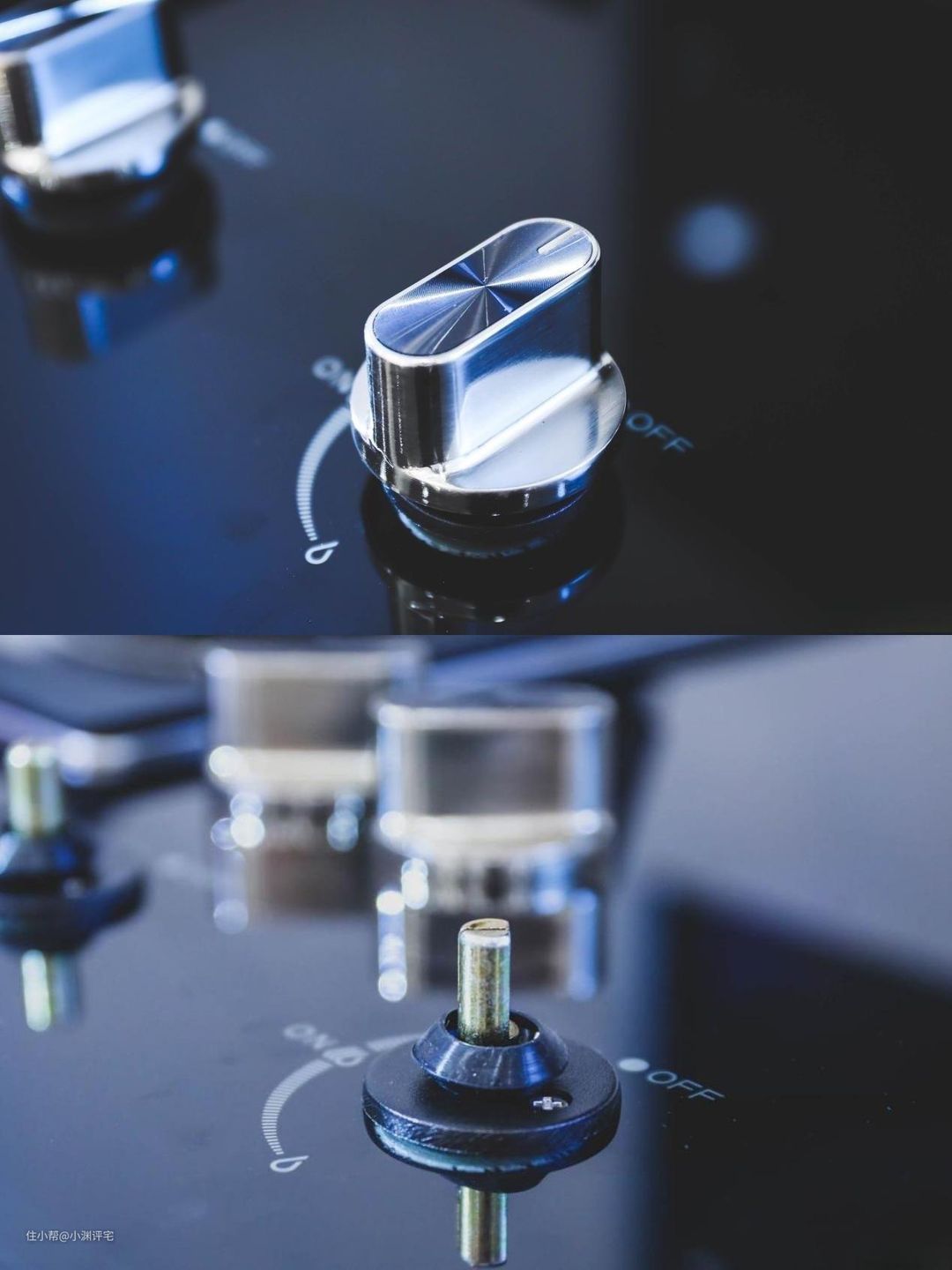 机关位置:用手指抠住调节阀和燃气灶台面之间的那个缝隙,用力向上提,就能把阀门取下来,看到下面的金属柱。