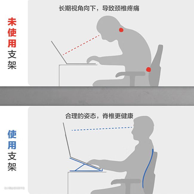 不管是选笔记支架还是显示屏支架,都要注意看支架的适用尺寸,不然切换横竖屏的时候,会触碰到桌面。