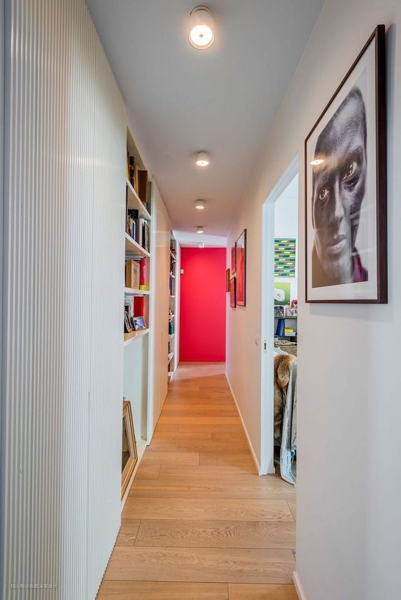 越窄的过道越要重视灯光照明,尤其是长过道,一旦来说大多用光洗墙,可重点考虑灯带或线型灯,线条感流畅自然,美观性也会更高。