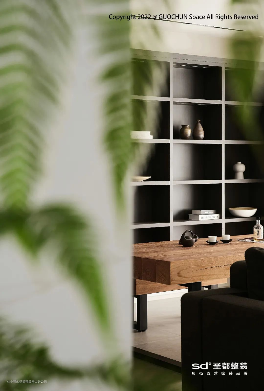 一般都会以沙发靠背为隔断,由此划分出客厅与茶室两块区域,不仅能实现当下人对互动型家居的需求,又能保持空间的相对独立,实用性很高。