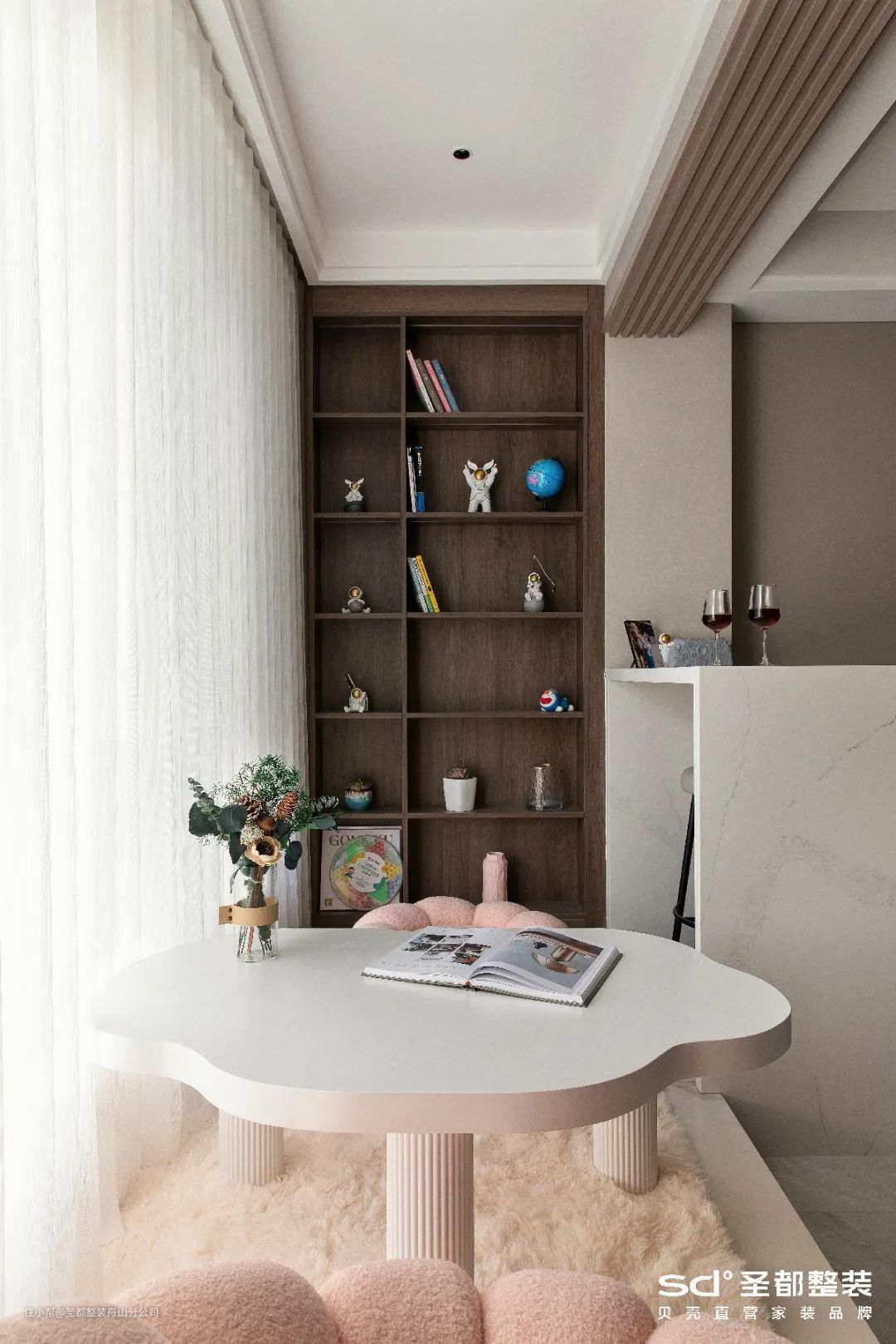 阳台临窗,视野开阔,风景独好,如果在此规划一个小茶室,既能品茶,又能赏景,绝对是全屋舒适度最高的空间。