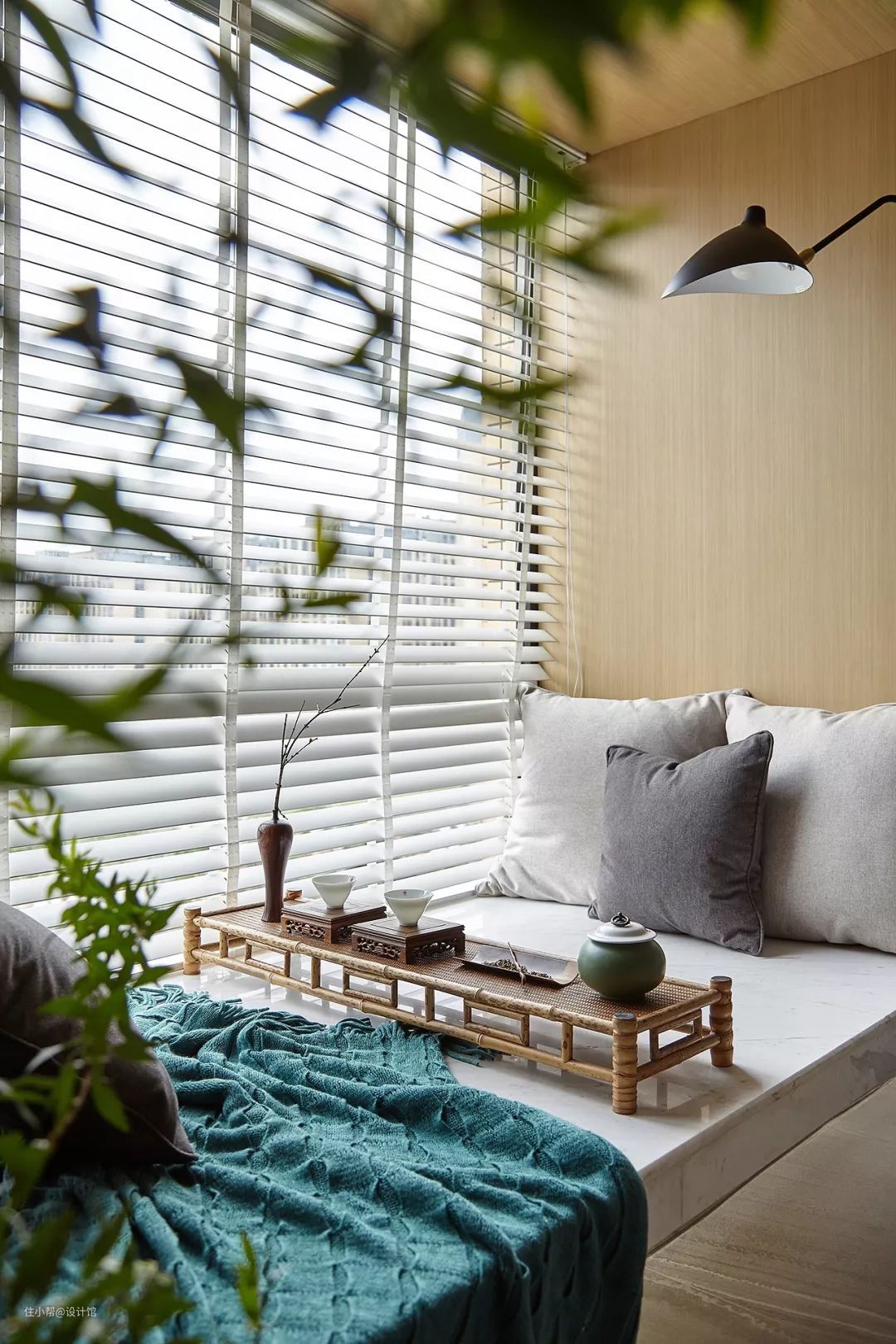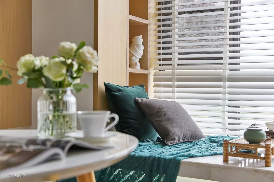 ▲飘窗上加入了小茶台,布置抱枕后,结合侧边的开放展示收纳格,为主人打造了一个文艺自在的休闲品茶空间。午后时光在这里聊天品茶,阳光透过百叶帘洒入空间,让生活充满自然惬意的情调感。