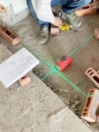 在现场根据设计图跟设计师、泥工师傅、项目经理对接,现场放样,定位砌墙位置,用水平仪弹出基础轴线,吊垂直线。