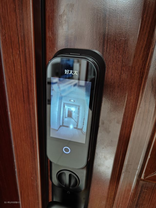 家里的安全问题这是很重要的。普通猫眼看不太清,而且访客能从外面能看家里是不是有人,而好太太V86Max带门内的4寸IPS彩屏猫眼就太有用了,分辨率480*800,画质还是比较清楚的,通过室内触摸按键主动唤醒查看门外情况。