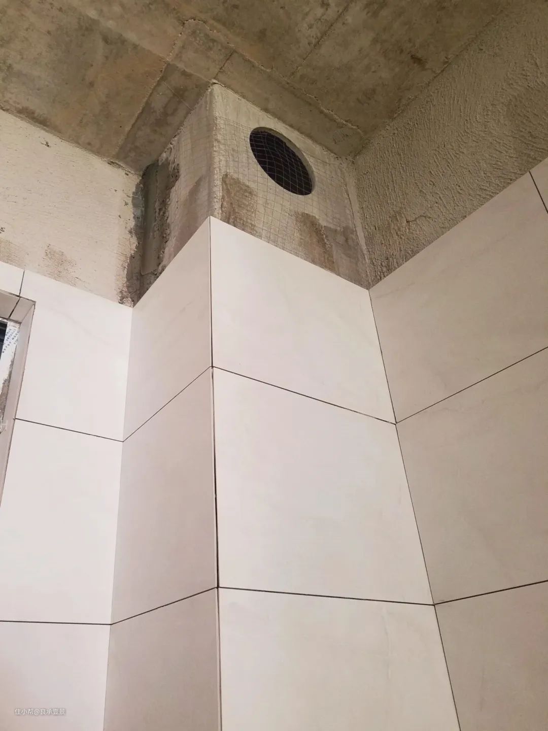③ 房屋特殊区域容易出现瓷砖空鼓。烟道会大量、持续地散发热量,瓷砖在此处频繁发生热胀冷缩,水泥层经过长期加热变得干裂,吸附瓷砖的能力也随之减弱。解决方法就是用红砖将烟管包住再贴瓷砖。