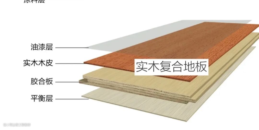 木地板分层:油漆层、实木木皮、胶合板、平衡层