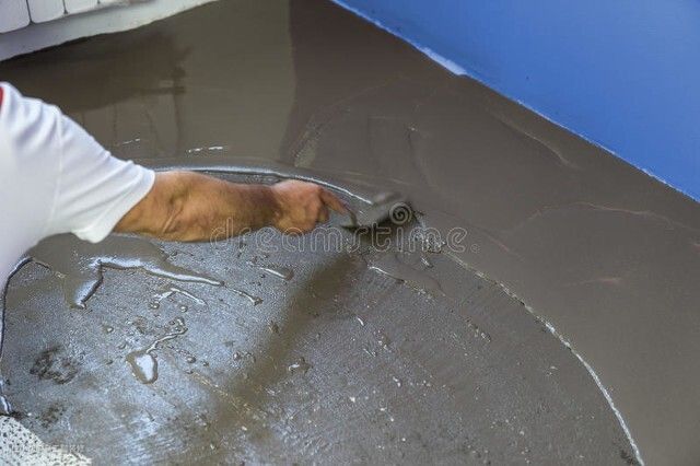 调配好的呈流体状,具备良好的流动性,不需要像水泥砂浆找平多重振捣抹压,将水泥倒在地面后用刮刀推开推平至整个空间。