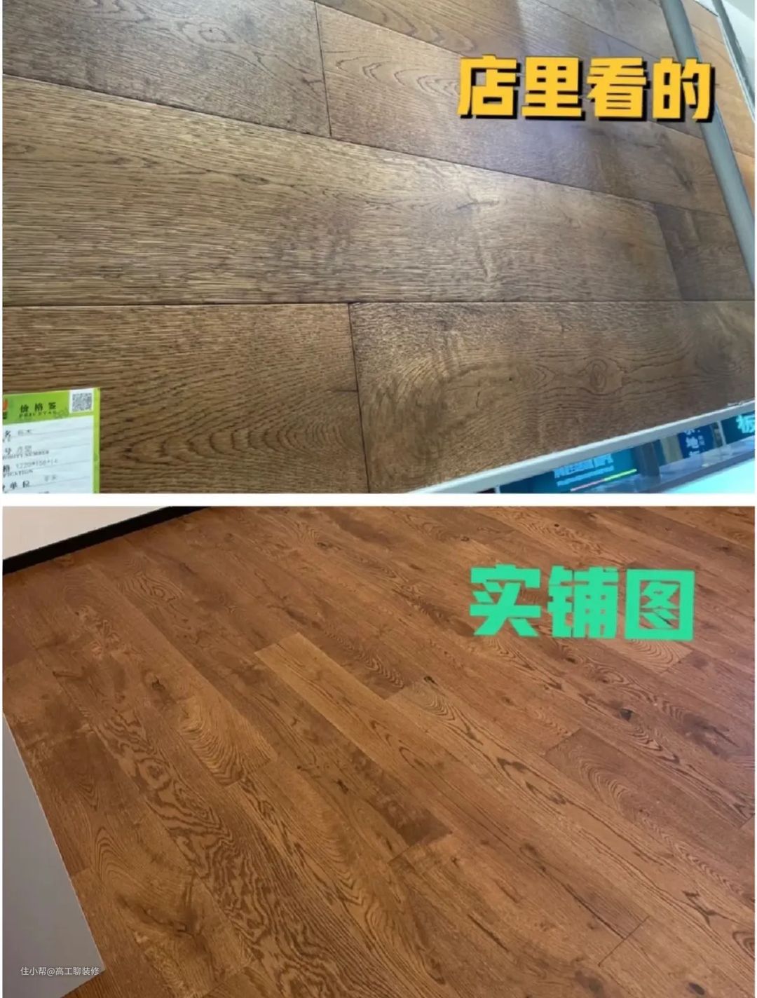 ②市面上木地板的品牌种类比较多,往往从门店里看到的和铺贴在实际家里的地板存在很大的差异性,无论是从颜色还是规格大小都和当初从店里选择的木地板不一致,这样就提醒大家,木地板现场安装的时候,一定要在现场盯工。