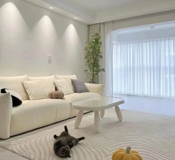 ▫️显得空间又大又亮堂,沙发背景墙刷奶白色乳胶漆,与奶白色的直排沙发相得益彰