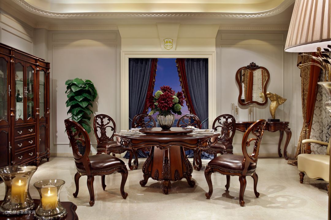 再次,颜色方面,美式古典家具以深色为主,例如红木、复古黑等。这些颜色使家具装饰更加考究、高档。