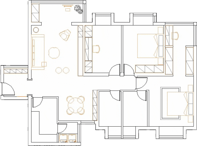 本期是改善案例,原始户型方正采光良好,设计师主要针对布局和生活细节做调整,提升空间的功性能和互动性。通过连通客厅和阳台扩大生活空间和采光,穿插全屋的拱形门设计让整个空间变得温馨复古。