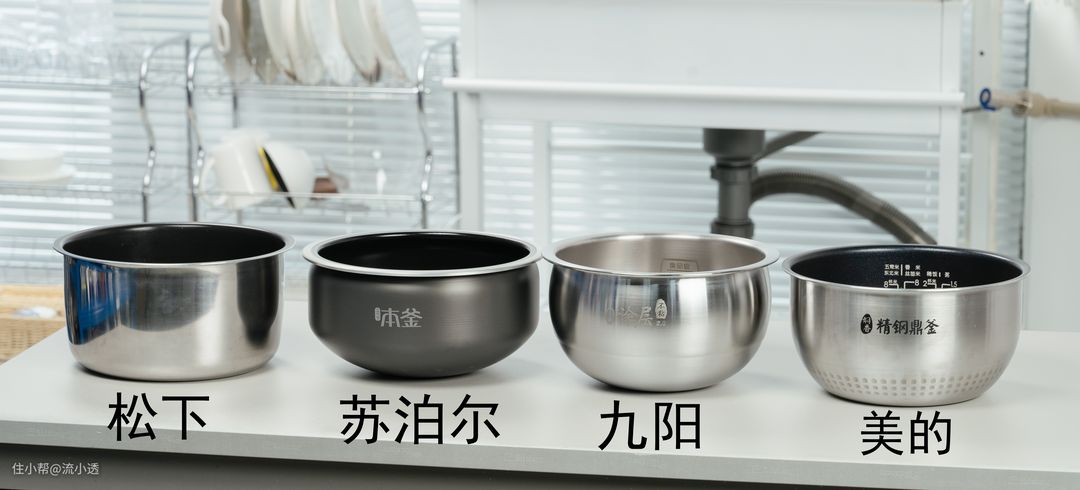 受热更均匀的本釜胆和球釜胆,四款中苏泊尔是本釜胆,九阳是球釜胆。