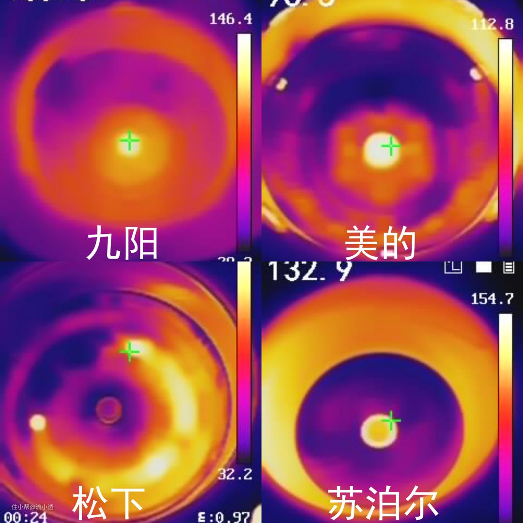 温差大发热差异显著的是苏泊尔,可以明显看到底部和周边的温差。
