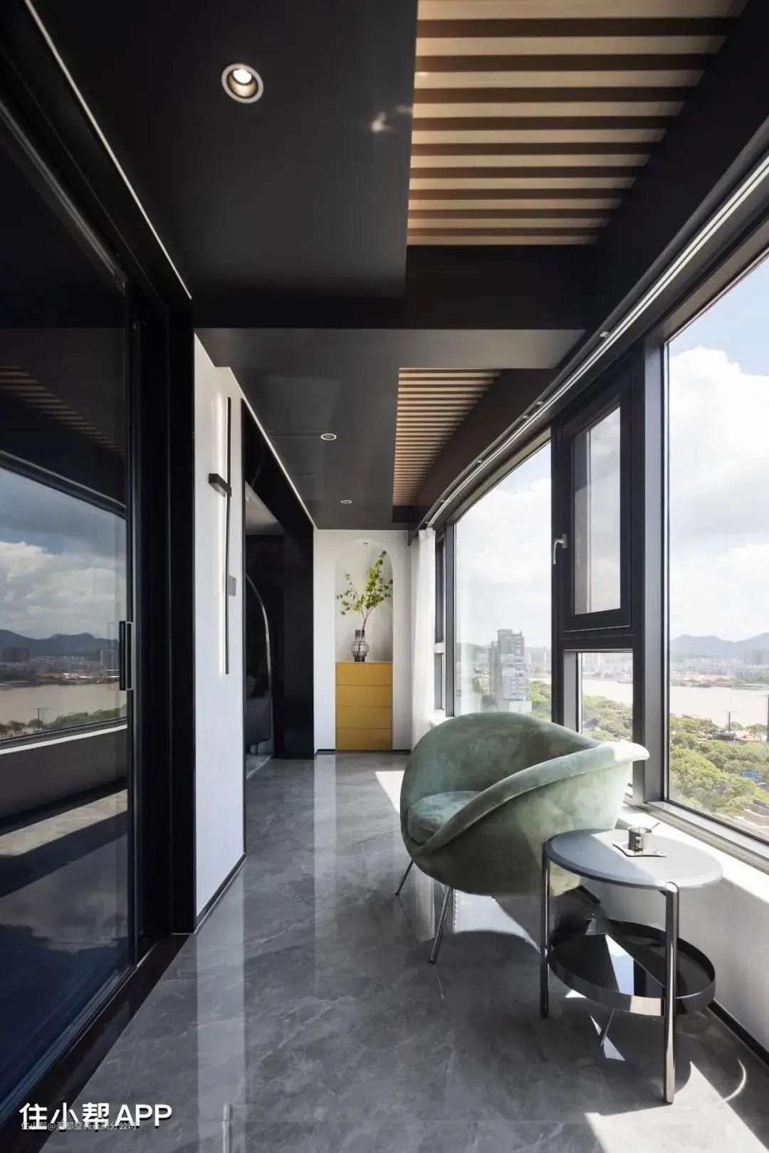 由于阳台两侧均为实墙,所以柜体设计可以丰富些。