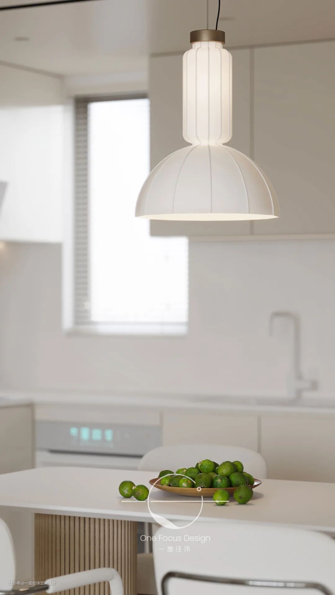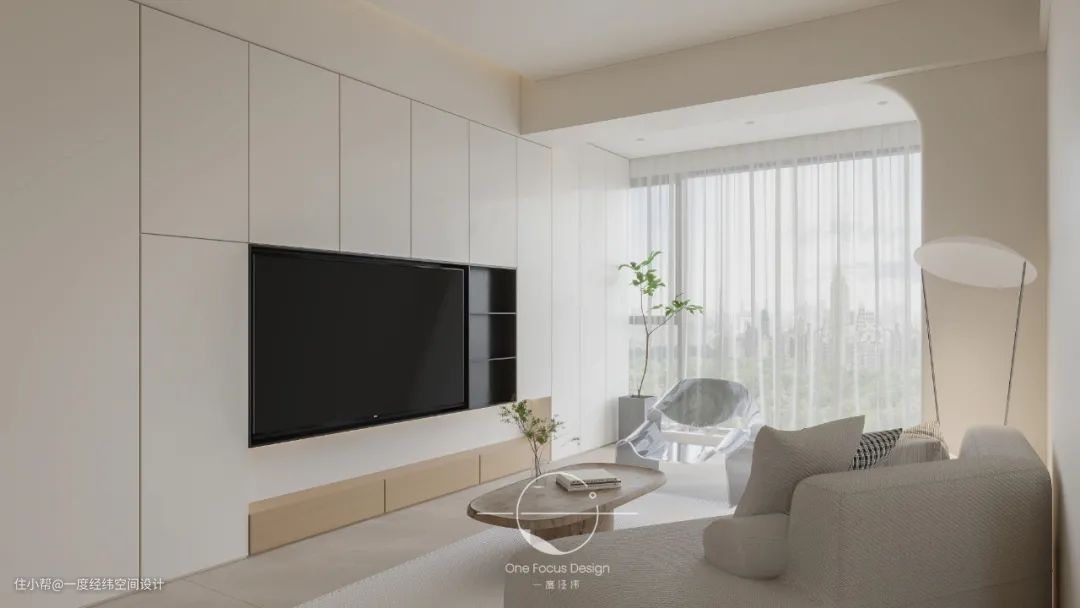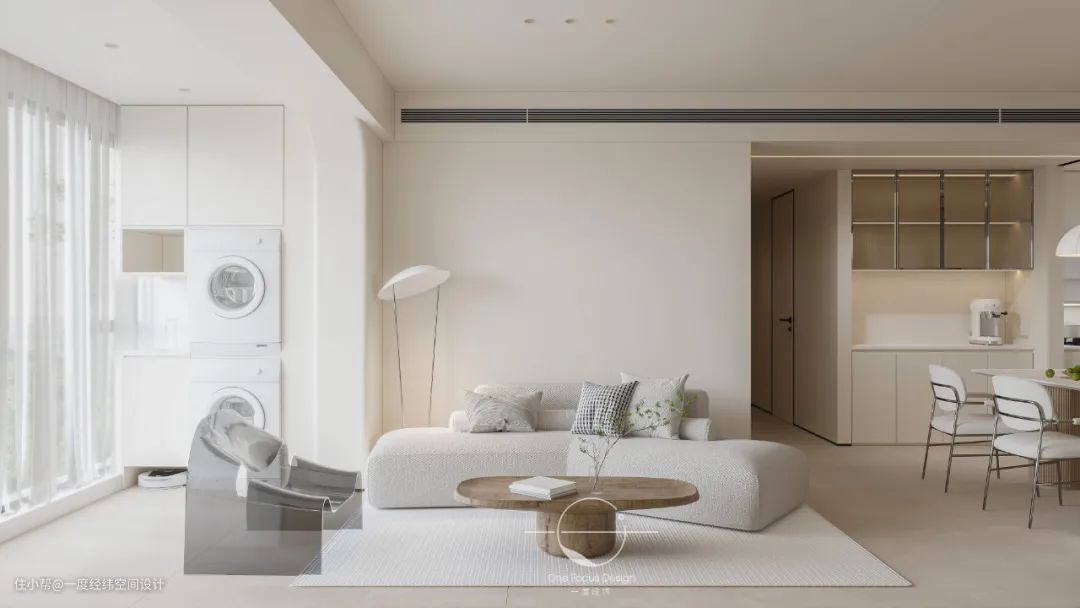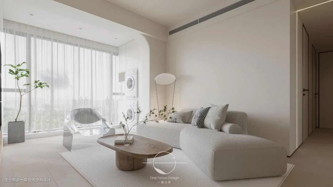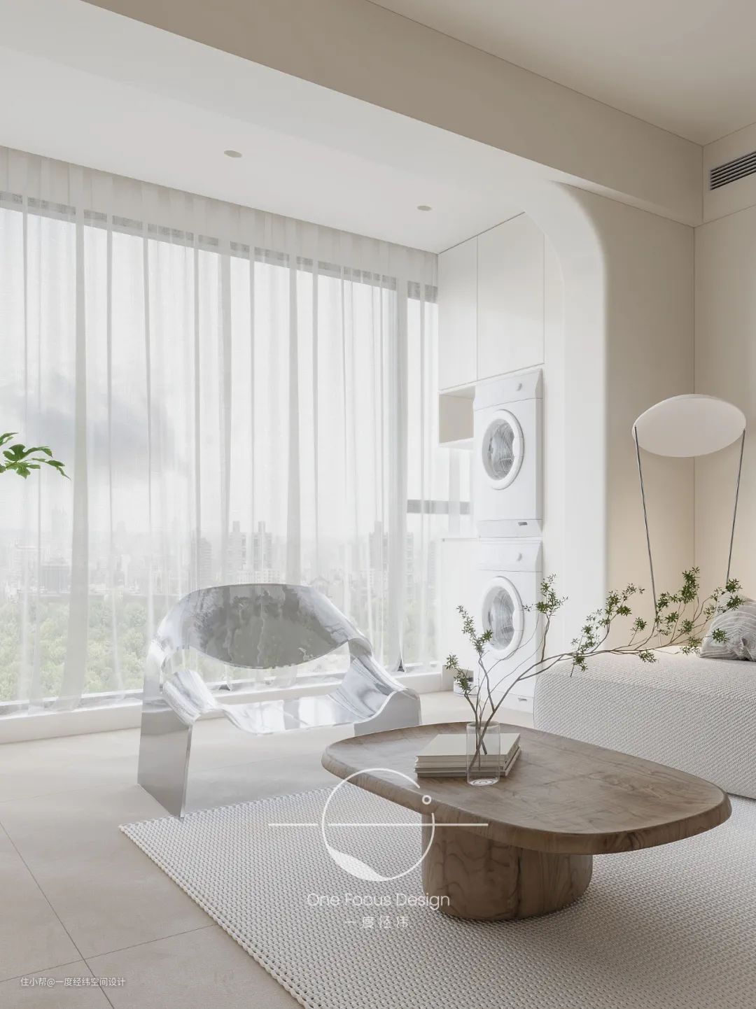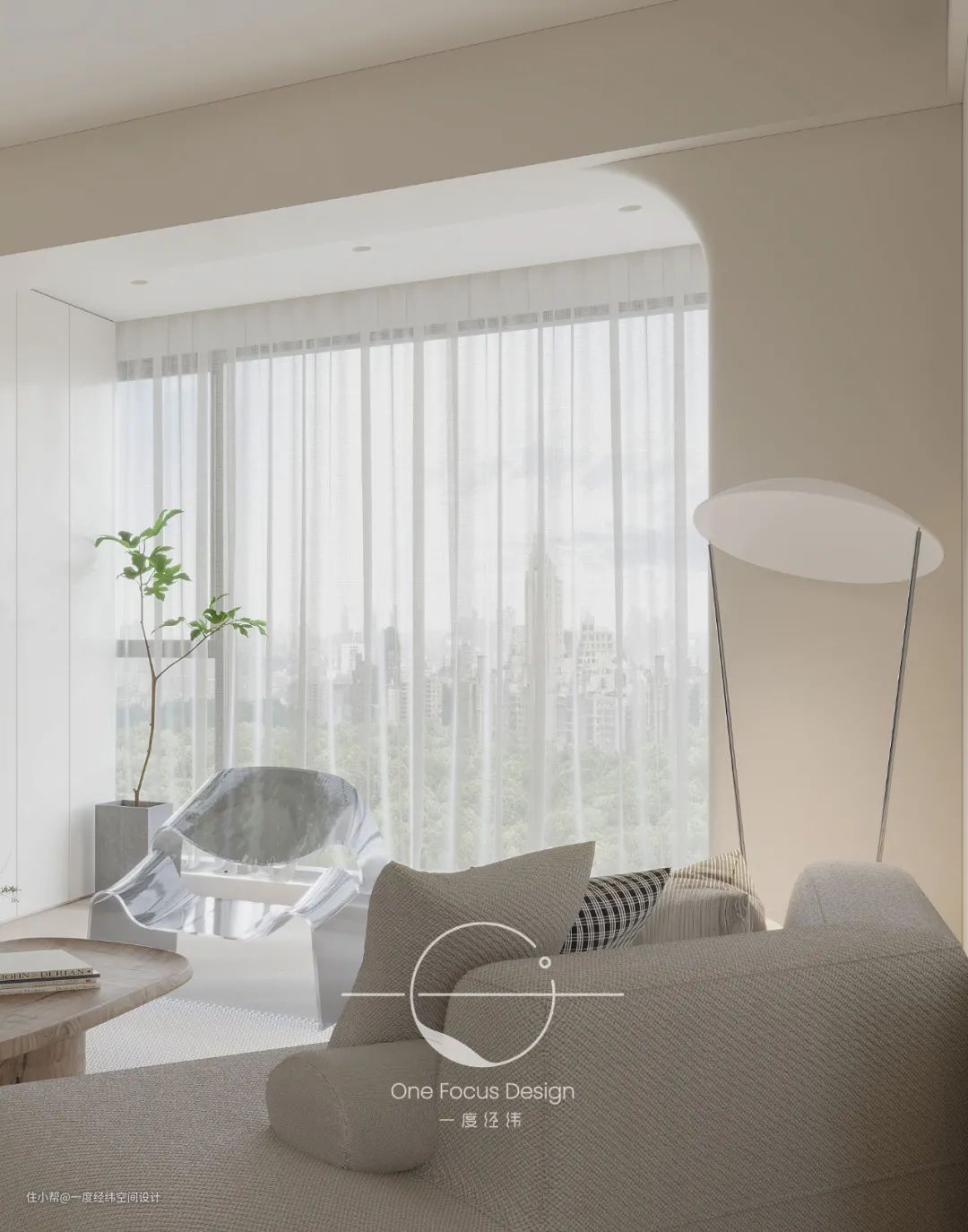 簡潔白凈奠定了張弛有序的空間基調,在光透過紗簾的緩緩地照射,成就一番溫暖、柔和且寧靜的空間感,留百的余韻潛藏對家的期待。