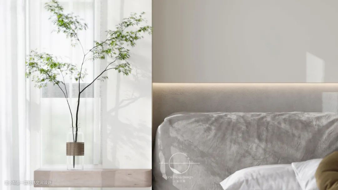 進入主臥,一切都是那麽靜雅、安寧,給人悠閑自在的感覺。擁抱一束陽光,留一道綠影寫意。