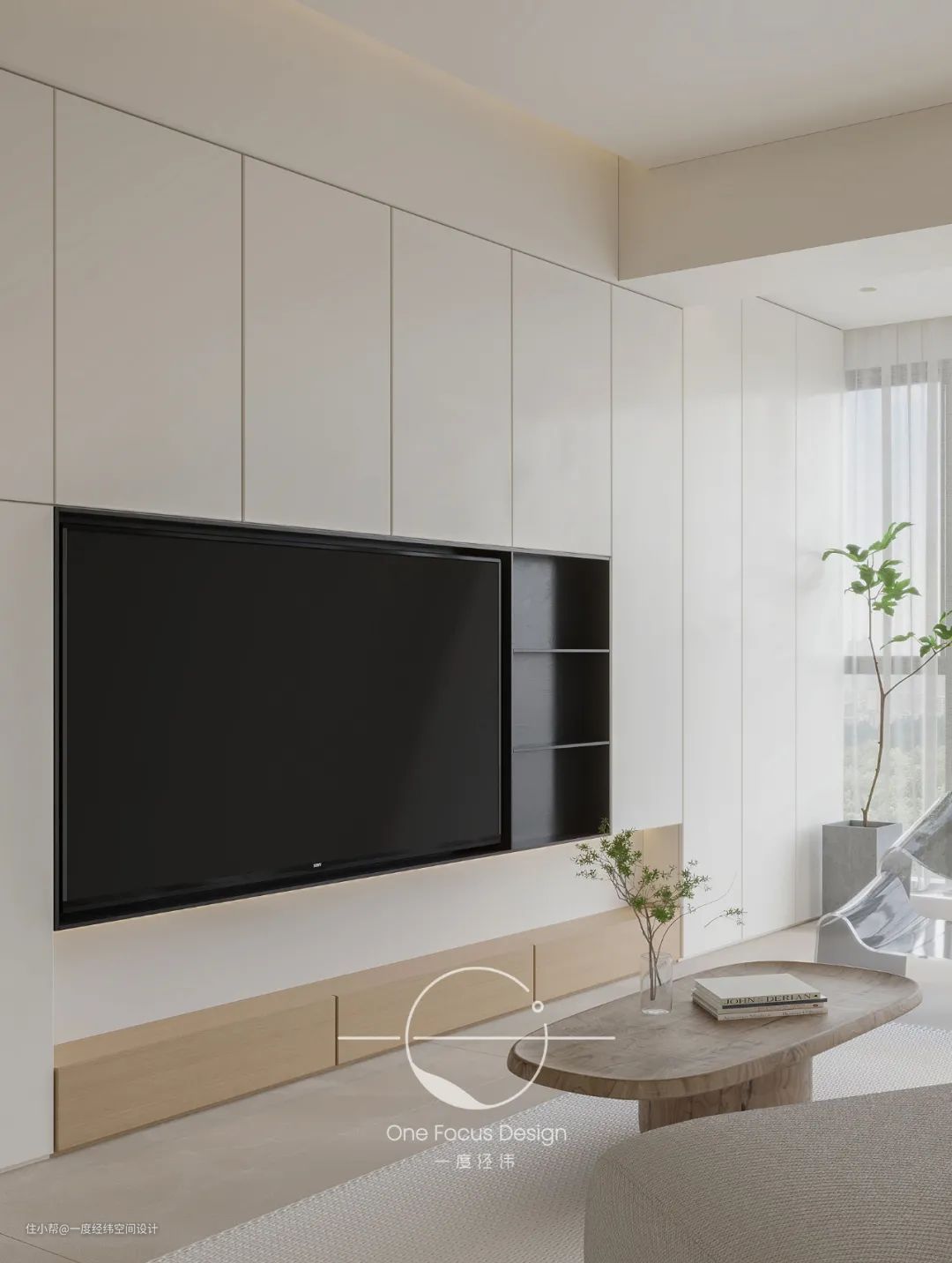 設計師設計了大量的櫃子來滿足業主的收納需求,並且將櫃門做成無把手的形式,目的是保持極簡的空間尺度。