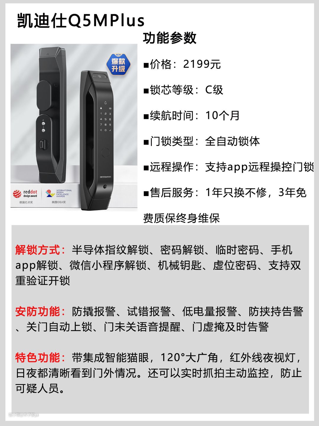 ⑤凯迪仕智能门锁Q5MPlus,2299元