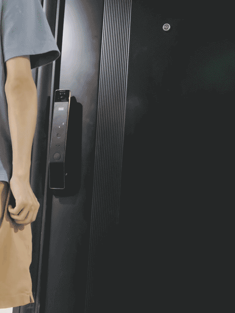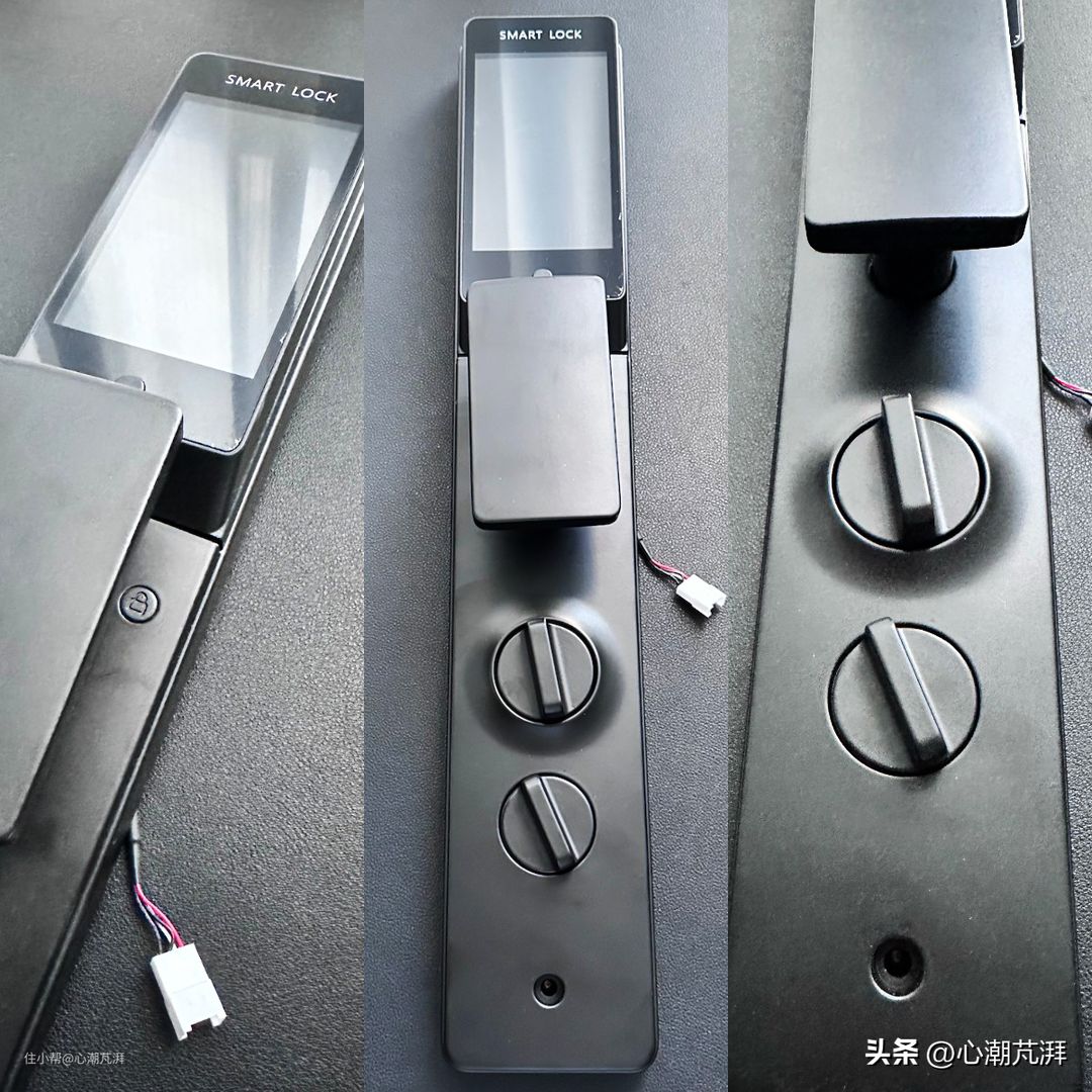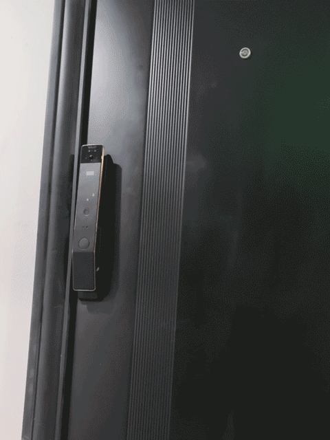 ▲外面板已经装好了,高颜值科技感十足。人脸识别模组、隐藏式屏幕数字、指纹采集器,扫脸或按压指纹采集器立即开门,十分方便。